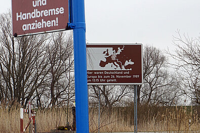 In Bleckede über die Elbe: Für den ersten Tag bietet sich die Strecke bis Hitzacker an. Dazu fährt man vom Biosphaerium zunächst in den Ort Bleckede und hält sich den Schildern folgend links. Hier geht es auf die Autofähre, die je nach Bedarf fährt. Es kann sein, dass man gut 20 Minuten warten muss, Zeit genug, einen Blick auf den breiten Fluss zu werfen. Auf der anderen Seite der Elbe begegnet man beim Verlassen der Fähre einem Stück deutsch-deutscher Geschichte: Die Region gehörte nämlich vor dem zweiten Weltkrieg zu Niedersachsen, wurde aber nach dem Krieg Teil der DDR. Erst 1993 wurde dies wieder geändert, also drei Jahre nach dem Mauerfall. Direkt an der Straße, gleich an der Fährzufahrt, steht übrigens auch noch ein alter Grenzturm.