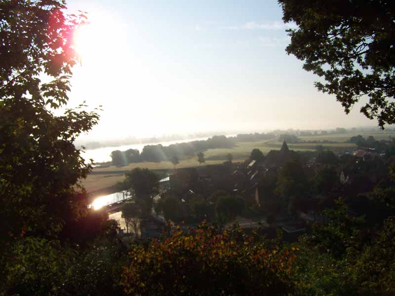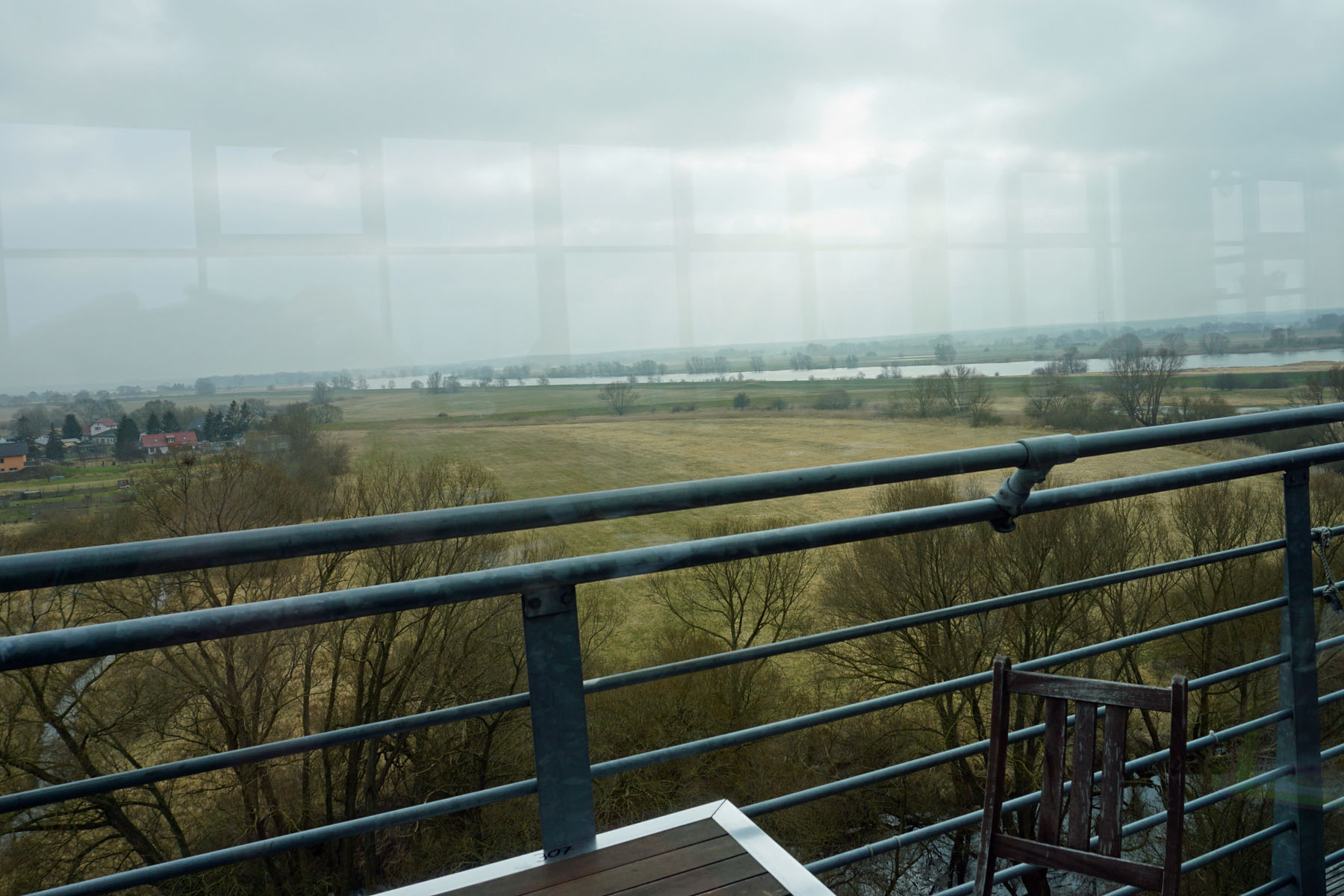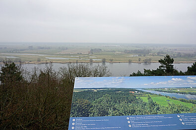 Von Darchau über die Elbe zurück: Nächster Halt Konau - das Dorf liegt im ehemaligen Sperrgebiet der DDR, und so kann man hier in einer kleinen Ausstellung Einblick in den Alltag in dieser Zeit bekommen. Von dort fährt man wenige Kilometer zurück nach Darchau und nimmt dort die Fähre zurück über die Elbe. Direkt an der Fährzufahrt führt links die Elbuferstraße weiter Richtung Hitzacker. Ungefähr auf halber Strecke ist der Aussichtsturm Kniepenberg angeschrieben. Hier sollte man auf jeden Fall hinaufsteigen, der Blick über das Elbtal lohnt sich.